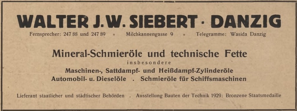 Walter Siebert. Książka adresowa z 1929 roku. Zbiory Pomorskiej Biblioteki Cyfrowej.