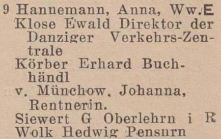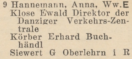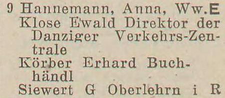Anna Hannemann. Książka adresowa z 1931 roku. Zbiory Pomorskiej Biblioteki Cyfrowej.