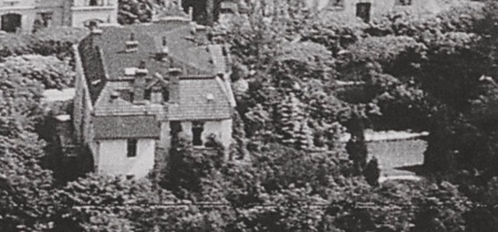 Fragment z pocztówki lotniczej. Od lewej budynki: nr 11, 10 i 9. Przełom lat 20/30 XX wieku. Zbiory Piotra Leżyńskiego.