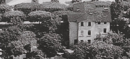 Fragment z pocztówki lotniczej. Od lewej budynki: nr 11, 10 i 9. Przełom lat 20/30 XX wieku. Zbiory Piotra Leżyńskiego.