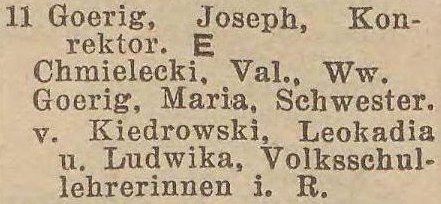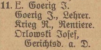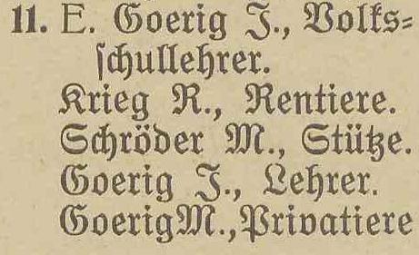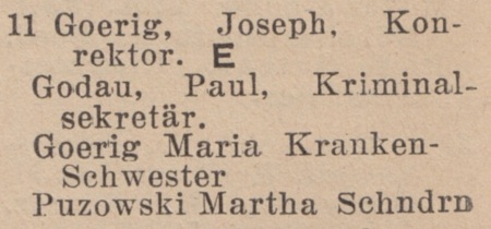 Joseph Goerig. Oberlehrer. Książka adresowa z 1929 roku. Zbiory Pomorskiej Biblioteki Cyfrowej.