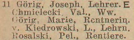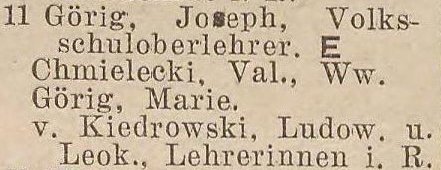 Joseph Görig. Lehrer. Książka adresowa z 1927 roku. Zbiory Pomorskiej Biblioteki Cyfrowej.
