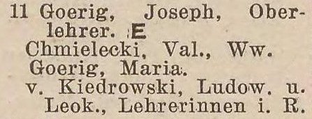 Joseph Goerig. Lehrer. Książka adresowa gminy Oliwa z 1909 r. Zbiory Pomorskiej Biblioteki Cyfrowej.