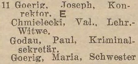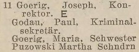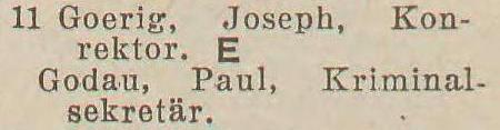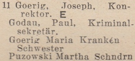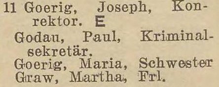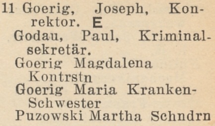 Joseph Goerig. Konrektor. Książka adresowa z 1931 roku. Zbiory Pomorskiej Biblioteki Cyfrowej.