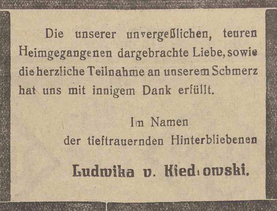 v. Kiedrowski, Leokadia, korepetytorka w stanie spoczynku (Privatlehrerin a. D.).