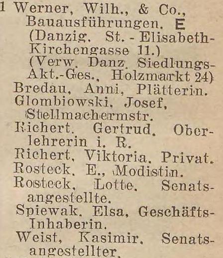Wilhelm Werner. Książka adresowa z 1929 roku. Zbiory Pomorskiej Biblioteki Cyfrowej.