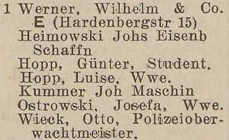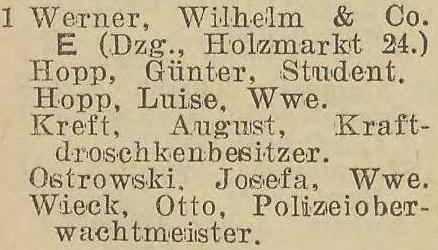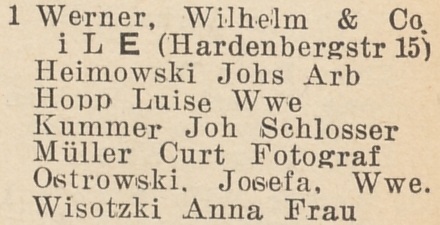 W latach 1929-1942 właścicielem budynków 1-3, 4-6 oraz 10-12 był Wilhelm Werner.