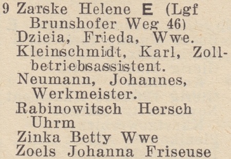 Helene Zarske. Książka adresowa z 1939 roku. Zbiory Krzysztofa Gryndera.