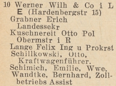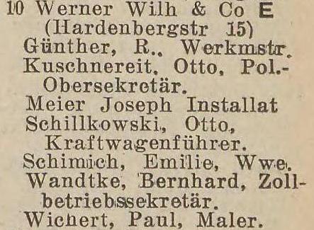 W latach 1929-1942 właścicielem budynków 1-3, 4-6 oraz 10-12 był Wilhelm Werner.