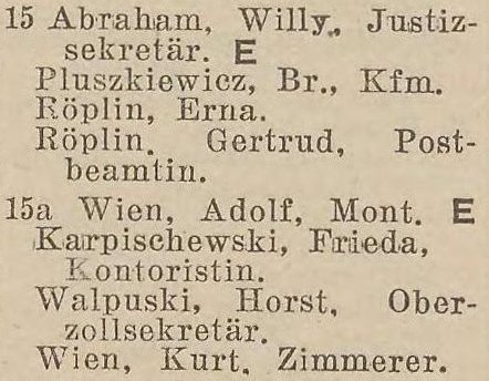 Willy Abraham. Adolf Wien. Książka adresowa z 1939 roku. Zbiory Krzysztofa Gryndera.