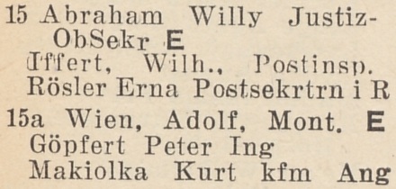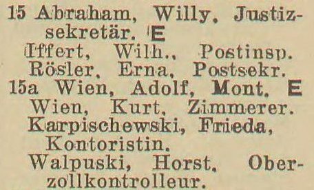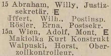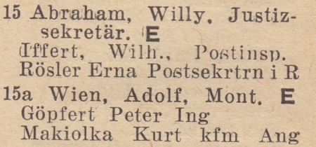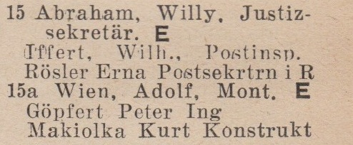 Willy Abraham. Adolf Wien. Książka adresowa z 1937-1938 r. Zbiory Piotra Mazurka.