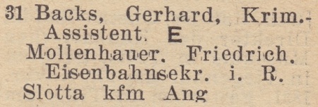 Gerhard Backs. Książka adresowa z 1936-1937 roku. Zbiory Pomorskiej Biblioteki Cyfrowej.