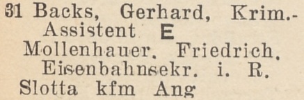 Gerhard Backs. Książka adresowa z 1931 roku. Zbiory Pomorskiej Biblioteki Cyfrowej.