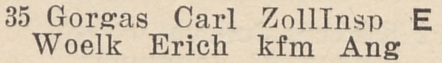 Carl Gorgas. Książka adresowa z 1939 roku. Zbiory Krzysztofa Gryndera.