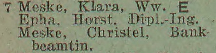 Friedrich Meske. Clara Meske zd. Hering. Christel Meske. Olivaer Zeintung nr 78 z 04. 04. 1923 r.