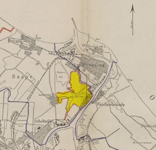 Weichselbahnhof, Broskische Straße. Ksi¹¿ka adresowa gminy Oliwa z 1909 roku. Zbiory Pomorskiej Biblioteki Cyfrowej.