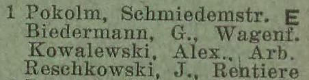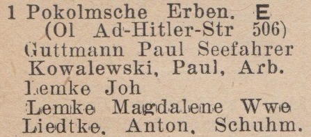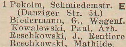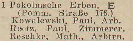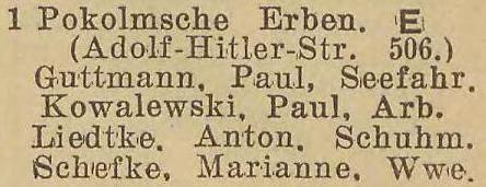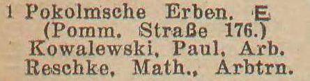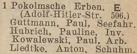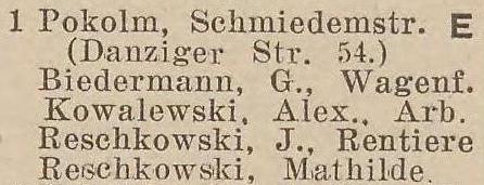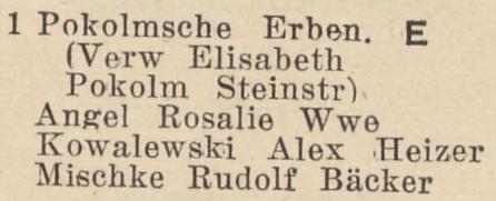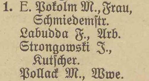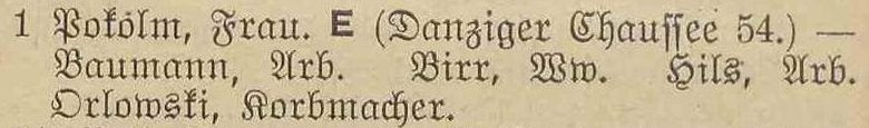 Frau M. Pokolm. Książka adresowa gminy Oliwa z 1909 roku. Zbiory Pomorskiej Biblioteki Cyfrowej.
