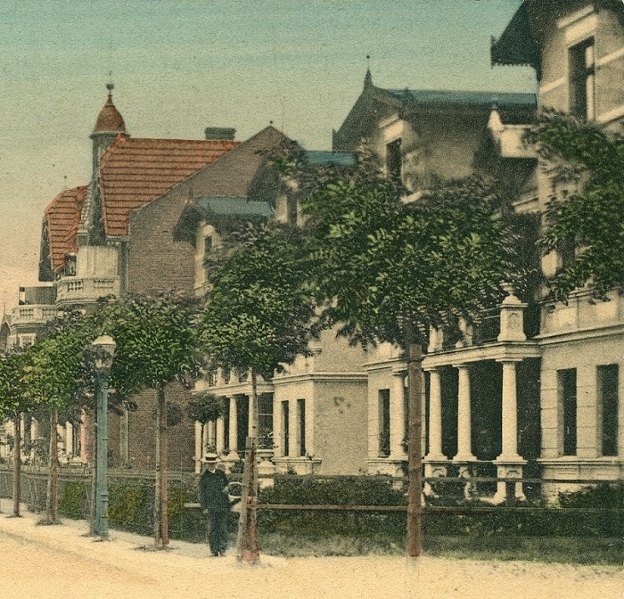 Budynek nr 12 przy ul. Georgstraße. Widok z około 1908 roku. Ze strony www.FotoPolska.eu (KC).