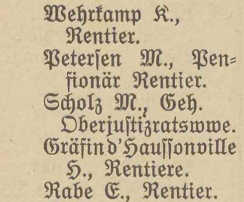 Nehring, Marie, utrzymanie prywatne (Privatiere).