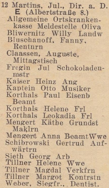 Jul. Martins. Książka adresowa z 1931 roku. Zbiory Pomorskiej Biblioteki Cyfrowej.