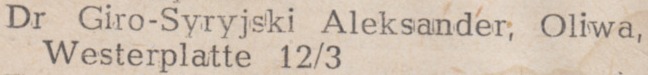 Rochus Tillner. Podziękowania noworoczne, Danziger General (Olivaer Zeitung) nr 306 z 31. 12. 1926.