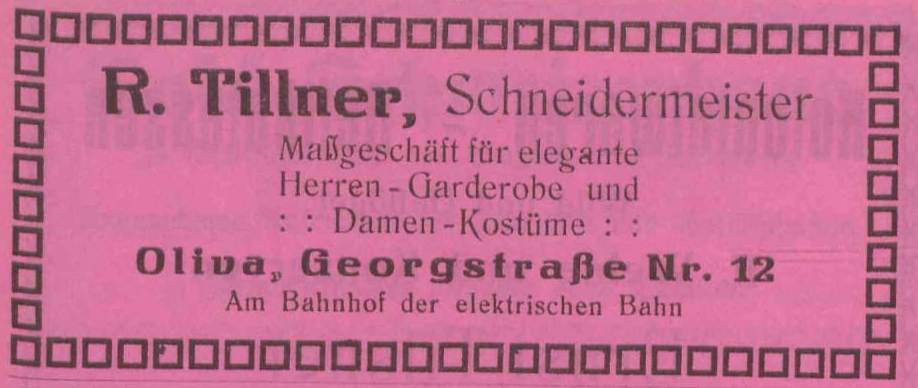 R. Tillner. Reklama. Książka adresowa gminy Oliwa z 1920-1921 r. Zbiory Pomorskiej Biblioteki Cyfrowej.