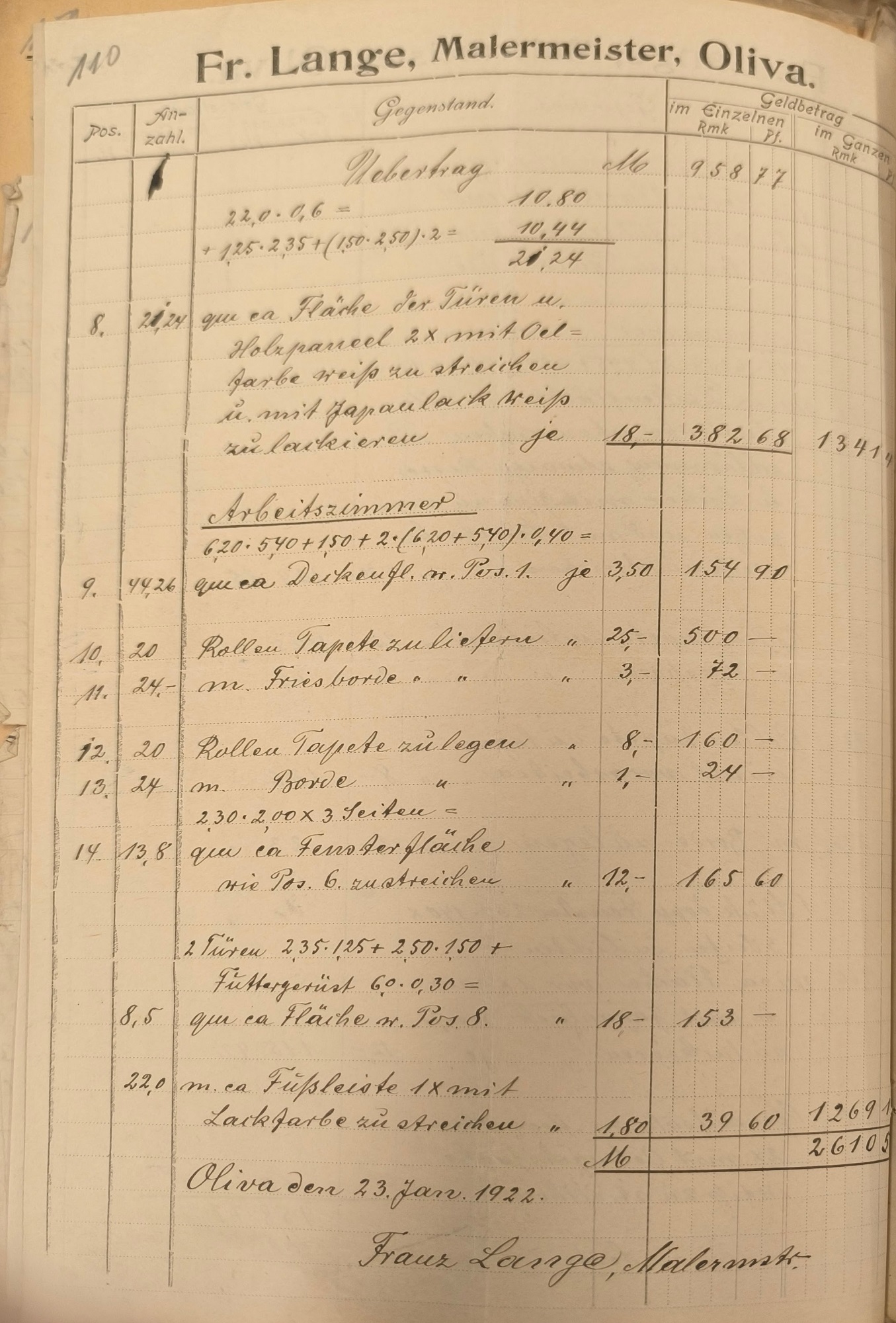 Rachunek Franciszka Lange wystawiony 23. 01. 1922 roku. Przekazała Grażyna Niemyjska.