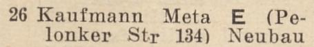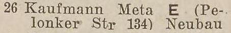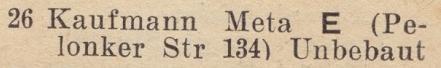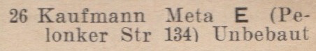 Brak informacji w książkach wydawanych w latach 20. XX wieku. W książce adresowej z 1931 roku, jako właściciel działki pojawiła się Meta Kaufmann mieszkająca przy ul. Pelonker Straße 134 (Polanki).