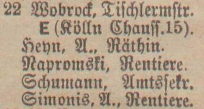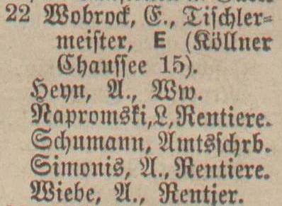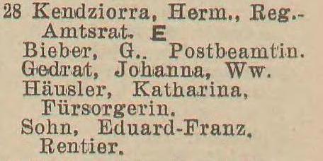 W 1901 roku letników przymowała Napromski (Linda), Georgstraße 22 (Olivaer Nachrichten, ).
