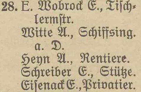 E. Wobrock. Książka adresowa gminy Oliwa z 1909 roku. Zbiory Pomorskiej Biblioteki Cyfrowej.