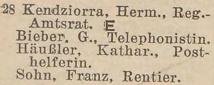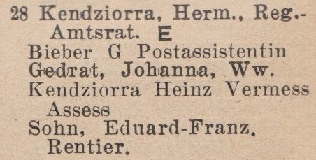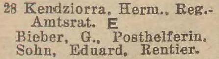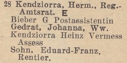 Kendziorra. Książka adresowa gminy Oliwa z 1915 roku. Zbiory Pomorskiej Biblioteki Cyfrowej.