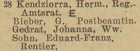Kendziorra, Hermann, główny sekretarz rządowy (Oberregierungssekretär).