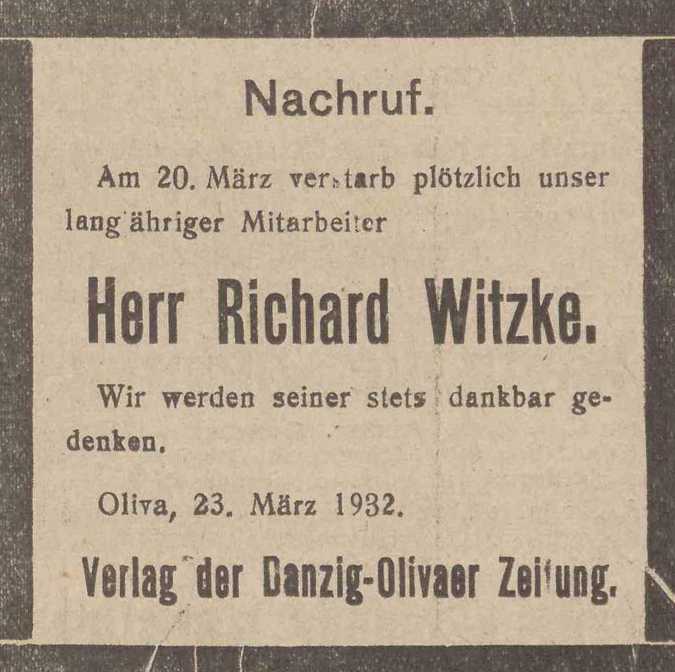 Richard Witzke. Danzig-Olivaer Zeintung nr 70 z 23. 03. 1932 r.