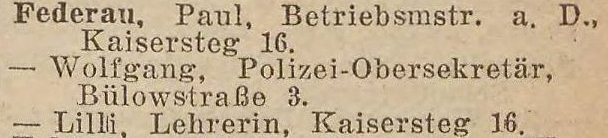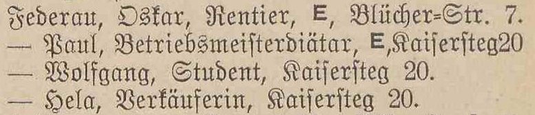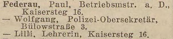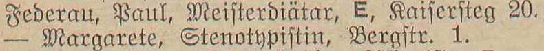 Paul Federau, Meisterdiätar, E (w³aœciciel), Kaisersteg 20.