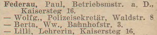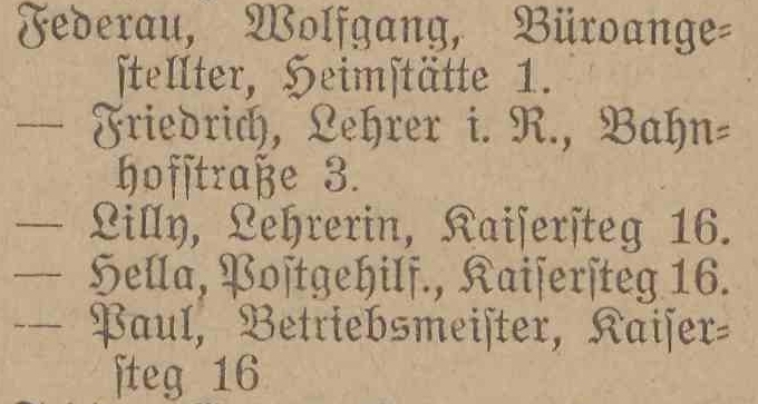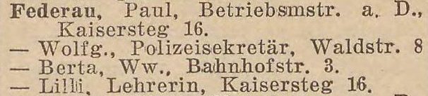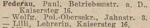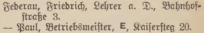 Paul Federau, Betriebsmstr. i. R., Kaisersteg 16.