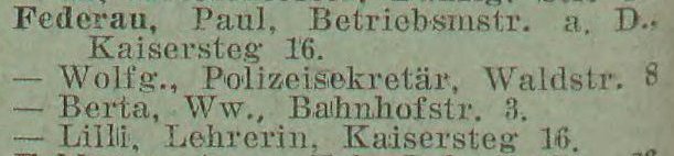 Paul Federau, Gewertsmstr. i. R., Kaisersteg 16.
