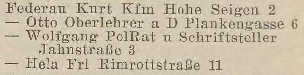 Walfgang Federau, Pol. -Rat. u. Schriftststeller, Jahnstraße 3.