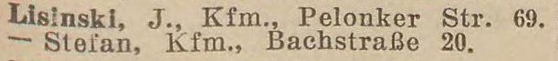 Julian Lisinski, Kfm., Pelonken Straße 69.