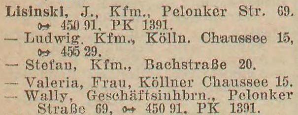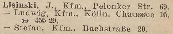 Ludwig Lisinski, Kfm., Köllner Chaussee 15.