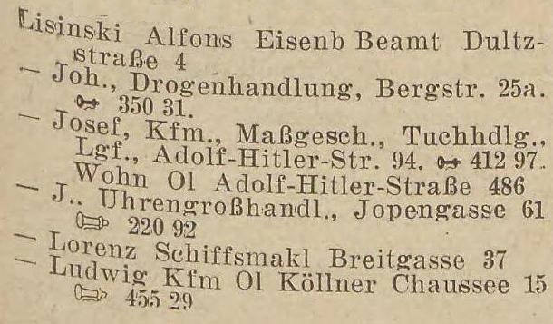 Anna Lisinski, Frau., Adolf-Hitler-Straße 486.