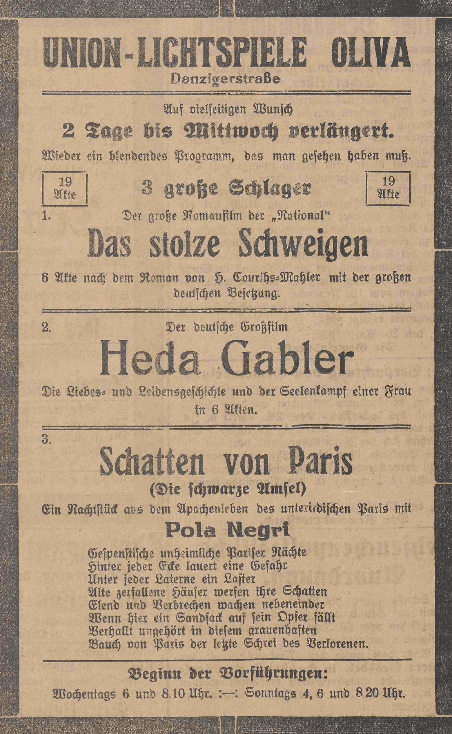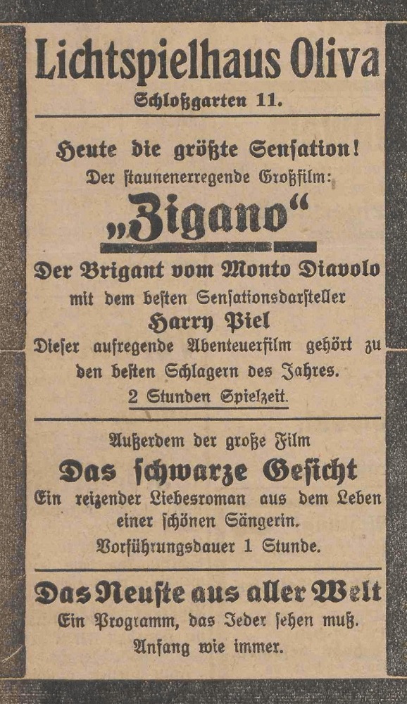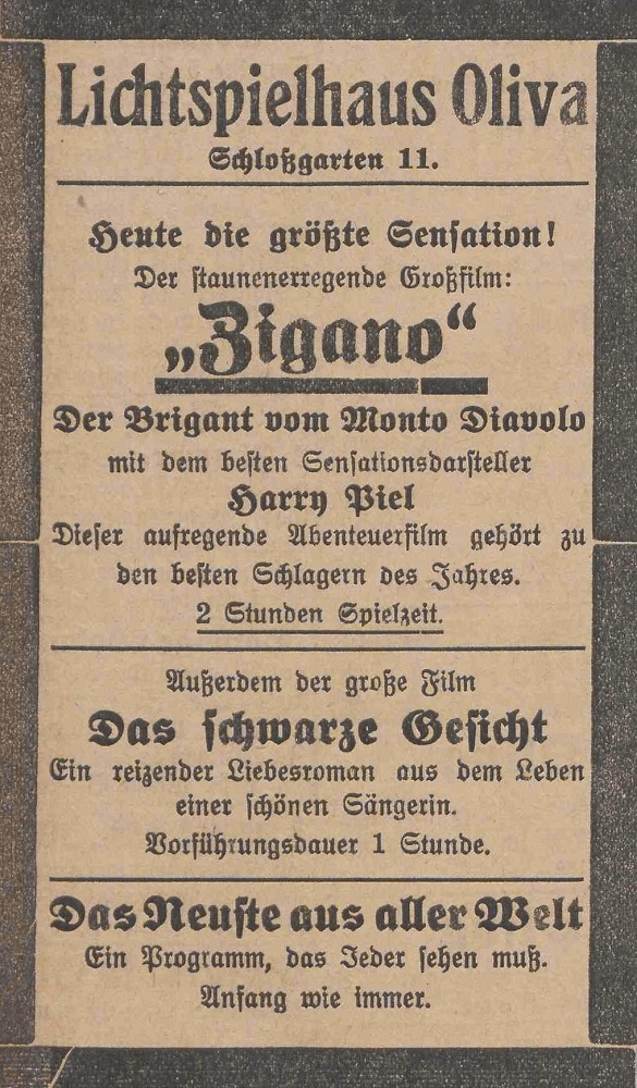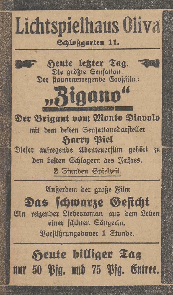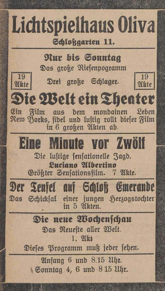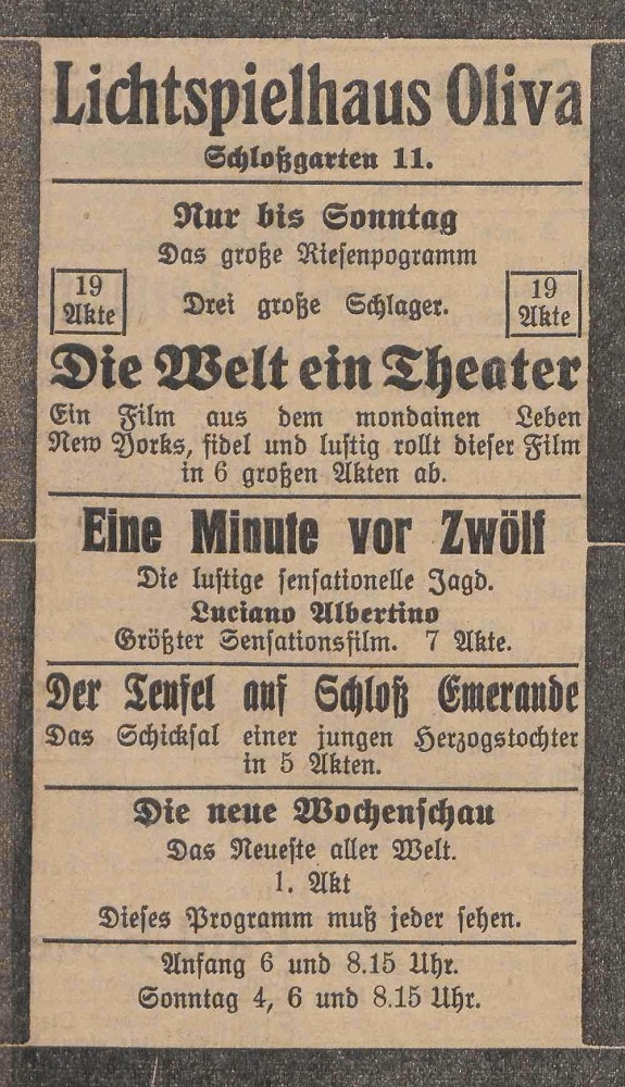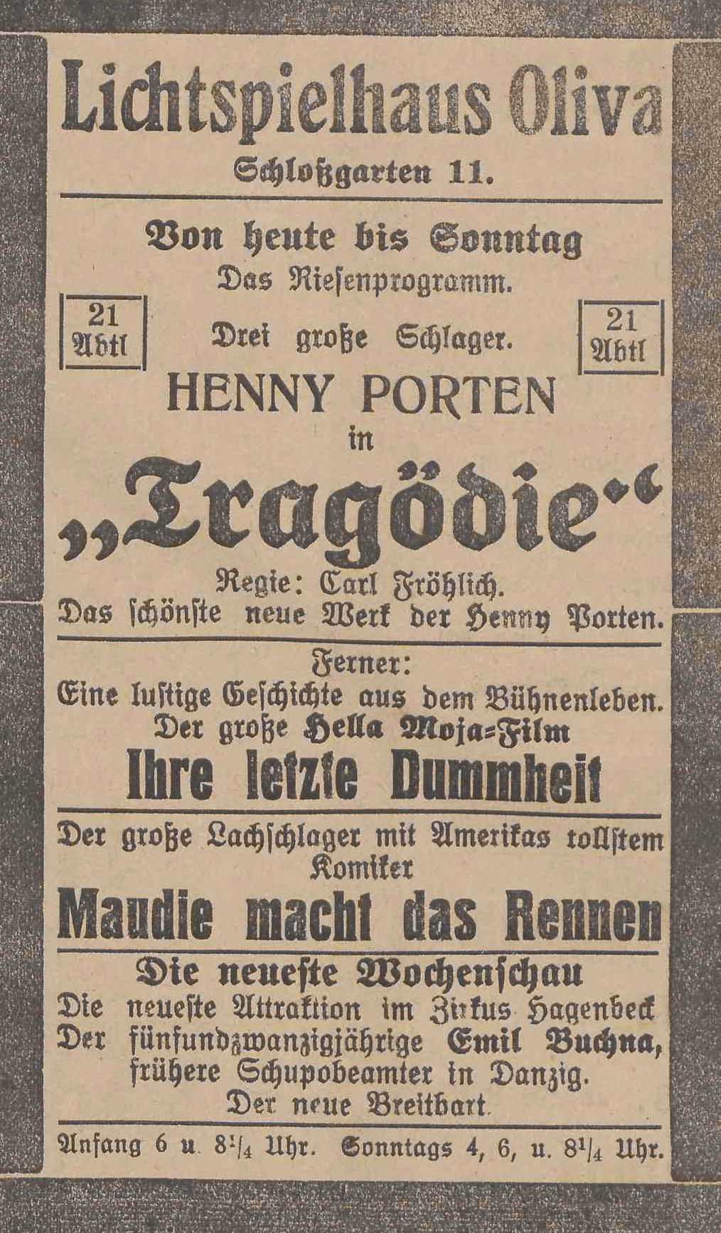 Lichtspielhaus Oliva - Am Schloßgarten 11 Union-Lichtspiele Oliva - Danziger Straße 2 Danziger General - Anzeiger mit der "Olivaer Zeitung" nr 77 z 01. 04. 1926 r.