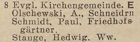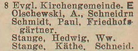Stange, Hedwig, wdowa (Witwe).