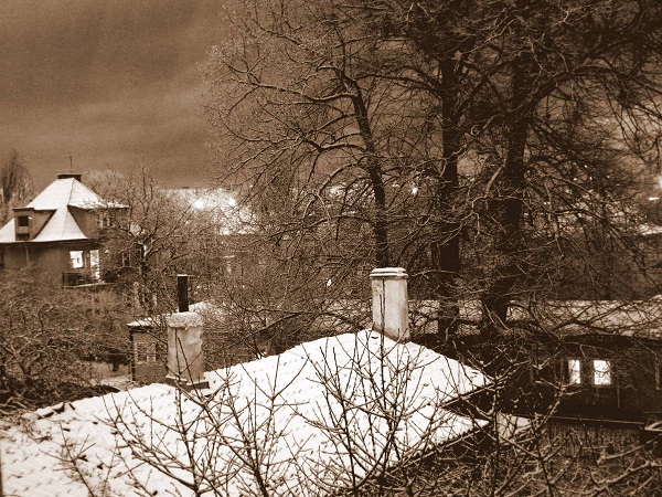 Widok z I piętra posesji przy ul Grottgera 5. Budynek na pierwszym planie został rozebrany.