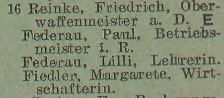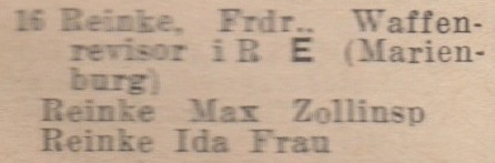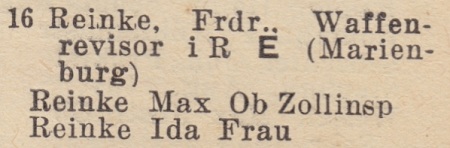 Friedrich Reinke. Książka adresowa z 1929 roku. Zbiory Pomorskiej Biblioteki Cyfrowej.