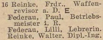 Friedrich Reinke. Książka adresowa z 1931 roku. Zbiory Pomorskiej Biblioteki Cyfrowej.