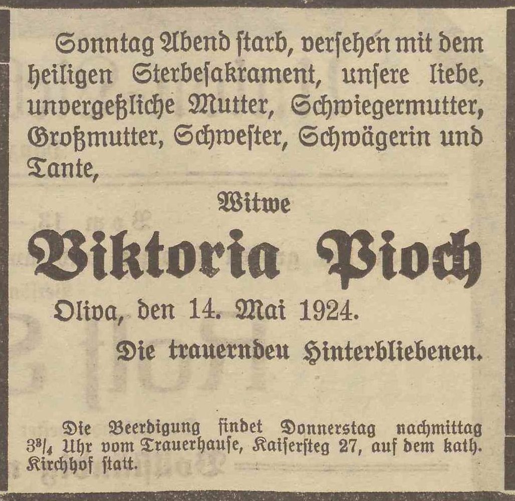 Viktoria Pioh. Olivaer Zeintung nr 112 z 14. 05. 1924 r.