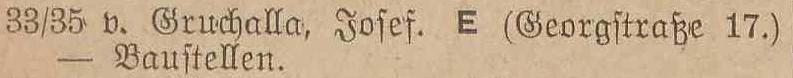 Niezabudowane. Josef Gruchalla. Książka adresowa gminy Oliwa z 1915 roku. Zbiory Pomorskiej Biblioteki Cyfrowej.