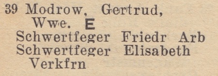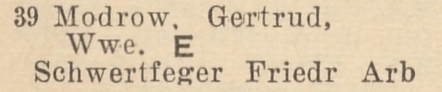 Gertrud Modrow. Książka adresowa z 1942 roku. Zbiory Pomorskiej Biblioteki Cyfrowej.