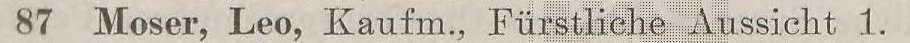 Leo Moser. Pomyłka w adresie? Książka telefoniczna z 1911 roku. Przekazała Grażyna Niemyjska. Zbiory Pomorskiej Bibl. Cyfrowej.