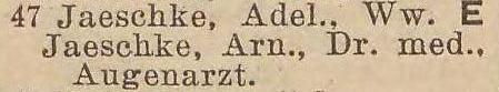 Adeline Jaeschke. Książka adresowa z 1929 roku. Zbiory Pomorskiej Biblioteki Cyfrowej.